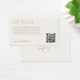 These wedding details enclosure / insert card feature a contemporary set of fonts in taupe against an ivory background. Included are a QR code and couple monogram at the back.