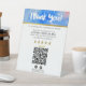 The words THANK YOU are WHITE and the background has a COSMIC CELESTIAL COSMOS STARRY OUTER SPACE NEBULA STARS COSMOS GALAXY UNIVERSE which adds some extra magic to this workhorse of design with a REVIEW 5 sparkling GOLD GLITTER 5 STAR TABLE TOP TABLE TENT QR code PEDESTAL SIGN.