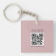 This is a modern minimalist black QR code acrylic keychain with company name, text with website suited for every business professional