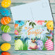 Send a smile this spring with this quacktastically cute Easter postcard! A fuzzy little duckling sits among vibrant eggs and blooming spring florals on a watercolor background, all under a playful “Happy Easter” greeting. Perfect for adding a splash of charm to any mailbox.