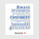 Artwork features certain qualities of great women, including Independant, Smart, Supportive, Confident, Empathetic, Resilient, and Passionate. The inspirational, modern typography design is suitable for women of all ages - young and seasoned.