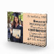 This turned out to be a great looking item. I found altering the design easy and the quality looked fab when all was done and finished. It matched my expectations wonderfully. The seller did a great job! The colours and font styles available were varied and I had fun tweaking them to my needs. The quality of both photo and the colours used where crisp too and came out wonderfully. Overall a great looking item very happy customer. Thank you!!