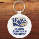 Give a co-worker, family member or friend a Worlds Best Quality assurance manager gift with sports style logo in pink and blue and tan. Let them know you think they do a great job in their profession! Our Quality assurance manager occupation products also make great retirement gifts. You can use the design tool to personalise with a custom name too.
