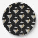 Quarantini Martini Cocktail Pattern Black Paper Plate