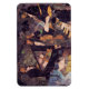I was inspired to create this original collage after listening to the wonderful music of a fantastic jazz quartet. I hope my impressionistic interpretation on the flexible magnet captures some of the feeling and movement. Four musicians swirl in a kaleidoscope of gold, brown, black, white, green, yellow and blue.