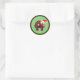 An adorable Christmas Sticker design that adds a touch of literary whimsy to your seasonal Holiday Greeting. These Sticker features a design of Quasimodo, The Hunchback of Notre Dame, wearing a cute little Santa hat on a green background with a bright red boarder surrounded by pixelated snowflakes for a ugly Christmas sweater look.