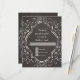 Matching RSVP Response return by mail card including white envelope. Beginning with hand drawn script swirl calligraphy flourishes that have been turned into a hand written chalkboard effect and paired with a double border quatrefoil style frame also in chalky drawing. On the reverse side is a place to put your monogram initial inside the sketch of a starburst design. Art by internationally licensed artist and designer, Audrey Jeanne Roberts, copyright.