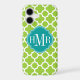 © 2012 Socialite Designs. Our elegant quatrefoil design in green and white iPhone case has a banner for your monogram, initials or name.