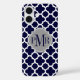 Quatrefoil Navy Blue White Pattern Grey Monogram Case-Mate iPhone Case