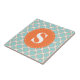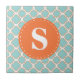 Quatrefoil Pattern Turquoise Orange with Monogram Tile