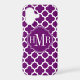 © 2012 Socialite Designs. Our elegant quatrefoil design in purple and white iPhone case has a banner for your monogram, initials or name.