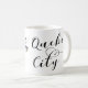 Mug with stylish scripted font design, with the flag of Quebec City in a heart.