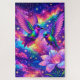 The Hummingbirds in Love Jigsaw Puzzle features vibrant artwork where two hummingbirds meet in an enchanting moment, surrounded by a scene rich in color and detail.