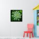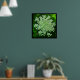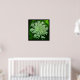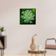 This lovely, lacy white flower is the wild carrot. It was introduced and naturalised in North America, where it is often known as "Queen Anne's lace". It is so called because the flower resembles lace; the red flower in the centre represents a blood droplet where Queen Anne pricked herself with a needle when she was making the lace. The single flower head on this poster, with it's hundreds of tiny blossoms, is set against a background of green, yellow and black.