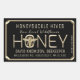3D Gold Frame. 'HONEY" is written in embossed text. Embossed Gold Queen Bee. Add your apiary name, honey varietal, net weight, name and contact info. Happy Beekeeping!