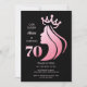 Queen Crown Pink Glitter Black 70th Birthday Invitation