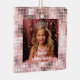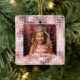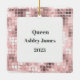 This ceramic Christmas ornament is shown with a holiday sample photo print and text: Queen, name and date.