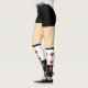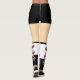 A fun and humourous graphic of ladies legs wearing short black tight fitting shorts and long socks that have red hearts edged with faux diamante diamonds set on white and black horizontal stripes.