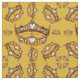 This pumpkin gold / goldenrod background fabric has this repeat scattered pattern of gold crowns and tiaras called "Queen of Hearts" is by Kristie Hubler, the crown tiara art is copyright protected, October 2001. It has heart shaped diamonds, and pearls, and is available in gold & silver.