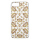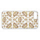 This white background iphone case has a repeat scattered pattern of gold crowns and tiaras called "Queen of Hearts" is by Kristie Hubler, the crown tiara art is copyright protected, October 2001. It has heart shaped diamonds, and pearls, and is available in gold & silver.