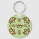 This keychain / key chain, with mint green colour background, with a scattered repeat pattern of has the gold crown tiara, with heart shaped diamonds, gems, and pearls, called Queen of Hearts gold crown tiara, was created by me, Kristie Hubler, for my customer's dog Queenie's fabric photo frame, this crown was hand painted onto satin and adhered to the frame. Created in October 2001, copyright protected. The crown sells on fabric here at @Zazzle at http://zazzle.com/fabricatedframes/fabric or http://spoonflower.com/fabric/1371922