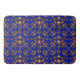 This bath mat with iris blue violet background has a scattered, repeat pattern of this gold crown tiara, with heart shaped diamonds, gems, and pearls, called Queen of Hearts gold crown tiara, was created by me, Kristie Hubler, for my customer's dog Queenie's fabric photo frame, this crown was hand painted onto satin and adhered to the frame. Created in October 2001, copyright protected. The crown sells on fabric here at @Zazzle at http://zazzle.com/fabricatedframes/fabric or http://spoonflower.com/fabric/1371922