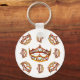 This keychain / key chain, with white colour background, with a scattered repeat pattern of has the gold crown tiara, with heart shaped diamonds, gems, and pearls, called Queen of Hearts gold crown tiara, was created by me, Kristie Hubler, for my customer's dog Queenie's fabric photo frame, this crown was hand painted onto satin and adhered to the frame. Created in October 2001, copyright protected. The crown sells on fabric here at @Zazzle at http://zazzle.com/fabricatedframes/fabric or http://spoonflower.com/fabric/1371922