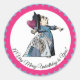 Queen of Hearts on Blue Harlequin and Pink Border Classic Round Sticker