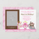 This cute birthday card features customisable text and a large opening to replace with your photo. Template designed for a 6.25 x 4.5 size. Includes envelopes. Great for any age jungle theme birthday!