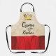 This is a Comical "One of a Kind" Woman"s Apron! It Features the Gold Crown with Colourful Jewels and the Comical Words..."QUEEN OF THE KITCHEN"...on a Tan Background Surrounded by a Decorative Red Border!