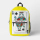 The Queen of Clubs Bag Print Cut Sew Backpack is lightweight and durable, the custom all-over-print Backpack is just what you need. The spacious interior is ideal for travel, school, gym, or any mobile storage need. Bring your stuff with you in style! Features Adjustable padded shoulder straps, two chambers on the inside for laptop storage, mesh side pockets, and an identification label. The backpack measures 17 inches x 12.5 inches x 5 inches and is made of durable Polyester Poplin. All-over custom print in full colour, two-chamber design with laptop storage pouch there is a mesh side pocket, (great for water bottles!) Identification label. This product is recommended for ages 4+, spot clean/dry clean only.