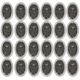 Classy black oval honey sticker with mediaeval heraldic honeybee design. Honeycomb pattern at top and bottom of oval. "Honey" is printed in a chiseled metallic font. Apiary name is written in decorative curved text above the bee. Vinyl labels are approximately 2 x 3" and fit small honey jars including Queenline 8 oz honey jars.