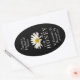 A striking white daisy on black glossy oval label. Label features your apiary name and location in white script. HONEY is written in a decorative font in white. Don't forget your net weight.