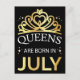 'Queens Are Born In July' cool quote with a crown illustration for birthday girls.