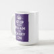 Keep Going Ma’am and Carry On - Queens's Diamond Jubilee Mug. Keep Going Ma’am and Carry On design is a Crown motif notated 1952-2012 with plain text slogan Keep Going Ma’am and Carry On over luxuriant Vintage Royal Purple background. We think this is the best, most succinct Diamond Jubilee design out there. An original design in homage to the ubiquitous 1939 HMSO poster Keep Calm and Carry On. This year we celebrate 60 years since Queen Elizabeth II ascended to the throne in 1952 with a year of celebrations up and down the length of our green and pleasant land focussed on the Diamond Jubilee weekend 2nd to 5th June 2012 and the London 2012 Olympics. Capturing the collective feelings of our island nation and the greater Commonwealth. While others may seek to splinter our United Kingdom we say frustrate their knavish tricks and thank you Ma’am for your dutiful service through thick and thin, far and wide - may this truly be your annus mirabilis. Long may you reign over us - God Save the Queen!