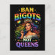 A radiant rainbow-haired queen in sparkling regalia shines beneath a bold pride slogan celebrating identity, strength, and self-expression.