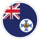 A clean, modern round sticker featuring the state flag of Queensland, Australia.