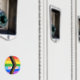 Queer SCV magnet featuring the trans-inclusive rainbow and the racially-inclusive stripes arranged into an arrow of progress