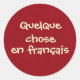 Quelque chose en français, "Something in French" in French; Cream on red background, Fun for French students to wear or dlsplay; when asked what "Quelque chose en français" means, the answer could begin a "Who's on First" conversation. Fun to use for promotion of foreign languages, Foreign Language Week, French club, etc.