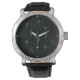 Confuse them all!! Neon green question marks on a black background, green time circles