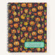 A customisable fall themed notebook - Design No. 2: You can personalise the cover of this notebook by adding someone's name to it. A pumpkin and cactus inspired design on a dark blue background. With spiderwebs and vines adding a finishing touch to the design.