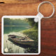 This tranquil scene captures the peaceful essence of a quiet lake, featuring a classic rowboat with fishing poles resting gently against its side. Surrounded by dark green water plants and set against a softly lit background, it evokes a sense of calm and relaxation, inviting viewers to escape into a serene moment of nature’s embrace.