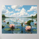 Quiet Lake with Water Lily Flowers and Cloudy Sky Poster