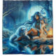 In the moonlit embrace of a serene forest, a Native Indian woman sits gracefully by a shimmering river, accompanied by her loyal white wolf. The warmth of a gentle fire illuminates the tranquil surroundings, reflecting a deep bond with nature.