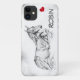 A black and white ballpoint pen illustration/drawing of a young horse laying on the ground just waking up from its nap. The case also features a little red heart and is customisable with your name. Artwork and design by Robin Cox.