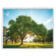 12‑month calendar with a green field and big tree artwork as the main nature theme.
