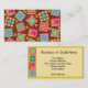 Make an impression with this business card for your quilt business, shop or guild. Coordinate with a matching business card holder. This business card features a quilt block design based on original art by Phyllis Dobbs. The design features favourite patchwork quilt blocks plus unique blocks created in vibrant and dynamic colours on a warm chocolate brown background. The colours are fuchsia pink, orange, turquoise, yellow, red and green. Fully customisable.