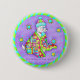 “I’m Cosy in my Quilt” button will be an adorable button for your quilt guild. This white dog is wrapped in a multi-coloured patchwork quilt to keep warm. He is wearing a striped toboggan. The background is purple with a green border with turquoise stripes. Quilt stars and dots are sprinkled randomly on the background. This dog will win you over with his adorable expression.