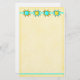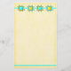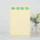 Quilt Lover Dog stationery can be customised to add your information or address. The page is tones of yellow with a border strip of quilt stars at the top and a turquoise border line at the bottom.