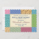 Celebrate any occasion with this 5 x 7 invitation featuring a design resembling an old-fashioned patchwork gingham quilt in shades of blue, rose, cream green, golden yellow, and aqua. Make it unique and change the text using the easy provided templates and the 'Customise It!' feature. This sample shows how it would look for a 90th birthday celebration but it can be personalised for any landmark birthday, special occasion or event. Both front and back of the invitation includes custom artwork and all text can be edited.